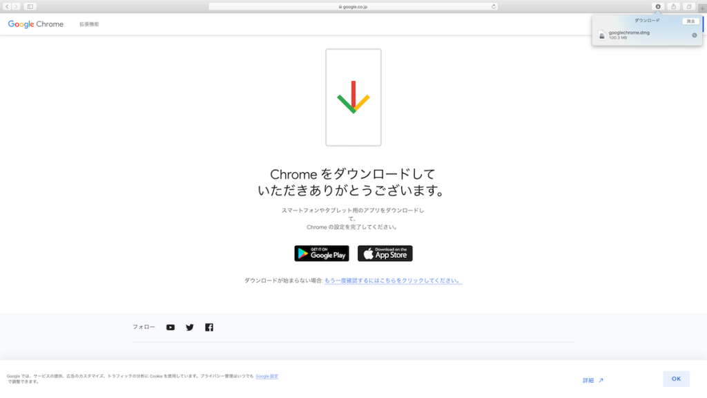 ここまでがGoogle ChromeをPCに落とす方法になります。