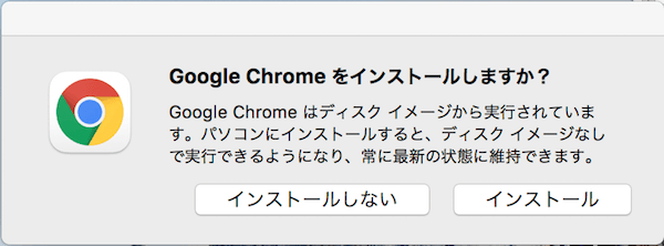 インストーラーファイルを開くとGoogle Chrome.appの保存先を指定するウィンドウが開いてくるので、筆や鉛筆マークのフォルダであれば、アプリケーションフォルダのため問題ありません。