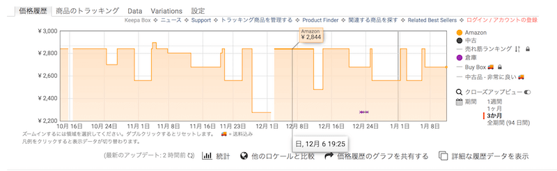 実際にAmazonで値段の履歴を見ていきましょう。