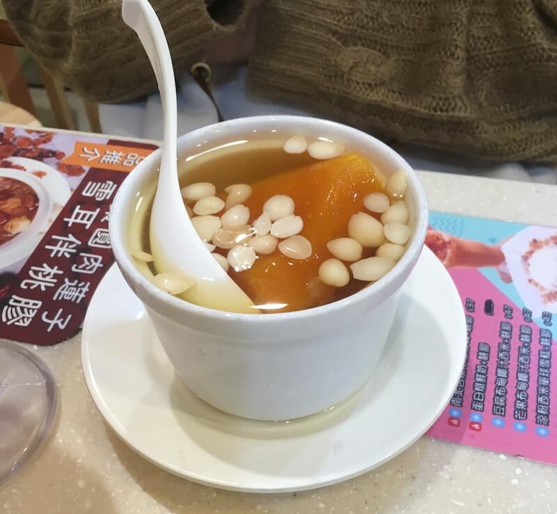 暖かい甘ーいシロップで煮た味のしないウリのようなものでした。