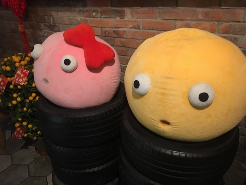 入り口ではYUM CHAのキャラクターがお出迎えです!
