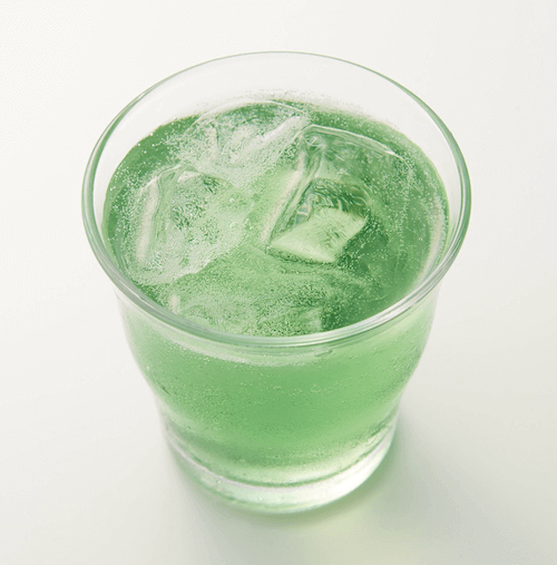 よく目にするメロンソーダとは少し違い色合いをしています。