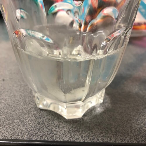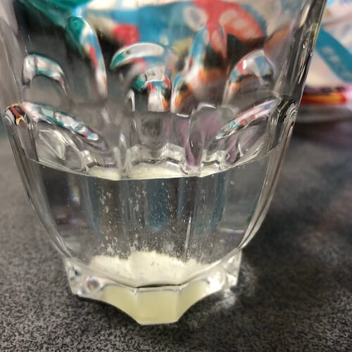 上が水を入れて、3回かき混ぜたあとです。まだ全然、粉が残っています。