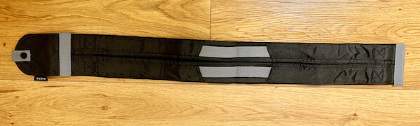 このエコバックは収納状態のボタンを外すと、長形の折りたたまれた状態になります。