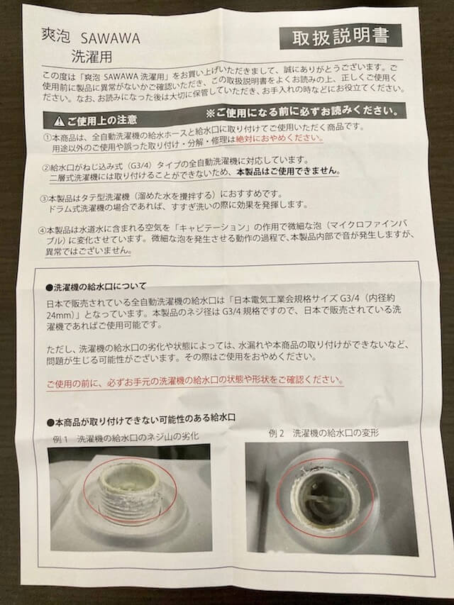 以上、取付簡単・工事不要・フィルターなどの消耗品不要の便利なマイクロファインバブル製造装置、「sawawa laundry」の紹介でした。