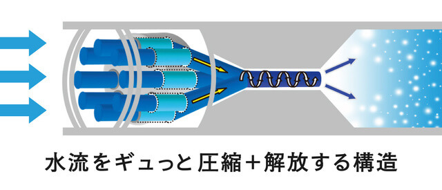 これを開放する際にマイクロファインバブルという小さな粒子を作って汚れを落とす。。