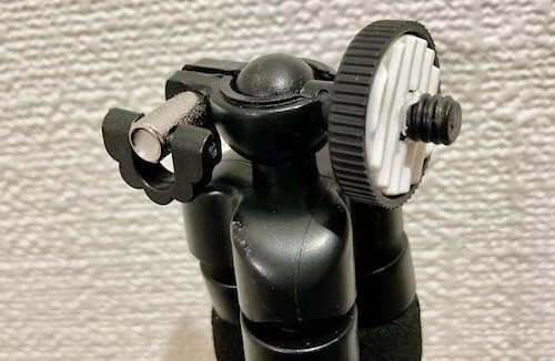ネジ山が付いているので、デジカメなどのカメラは直接ここに取り付けます。