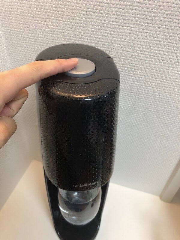 丸いボタンを数回押すだけで簡単に炭酸水が作れる。
